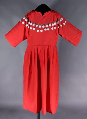 Red Dress, 2008, nylon, cotton, metal and paper tags, glass beads. Collection of the Alberta Foundation for the Arts The Art of Faye HeavyShield, organized and circulated by the MacKenzie Art Gallery. Financed by the Government of Canada. Curated by Felicia Gay.