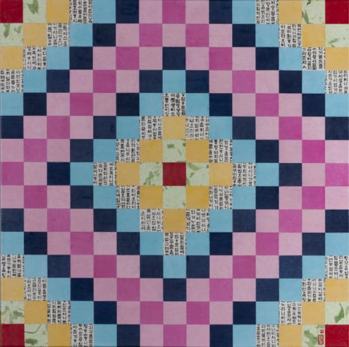 Spending her childhood in Korea then immigrating to Canada, her art is an attempted reconciliation of two dramatically different aesthetic traditions, one of which has a particularly rich textile tradition. Her recent artwork presents rhythmic juxtapositions of hues and lines inspired by the fourteenth century Chogakbo quilting in Korea. She enjoys working intuitively with both new and recycled materials to create sometimes harmonious, sometimes disjointed assemblage of emotive forms and colours to evoke the varied experiences of her life.