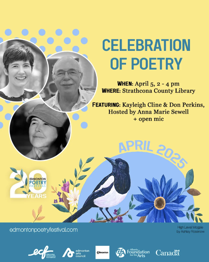 Celebrate National Poetry Month with an afternoon of poetry, hosted by Regional Writer in Residence Anna Marie Sewell and featuring two local poets, Kayleigh Cline and Don Perkins. There will also be an open mic session for those interested in sharing their own work. This event is co-presented with the Edmonton Poetry Festival.