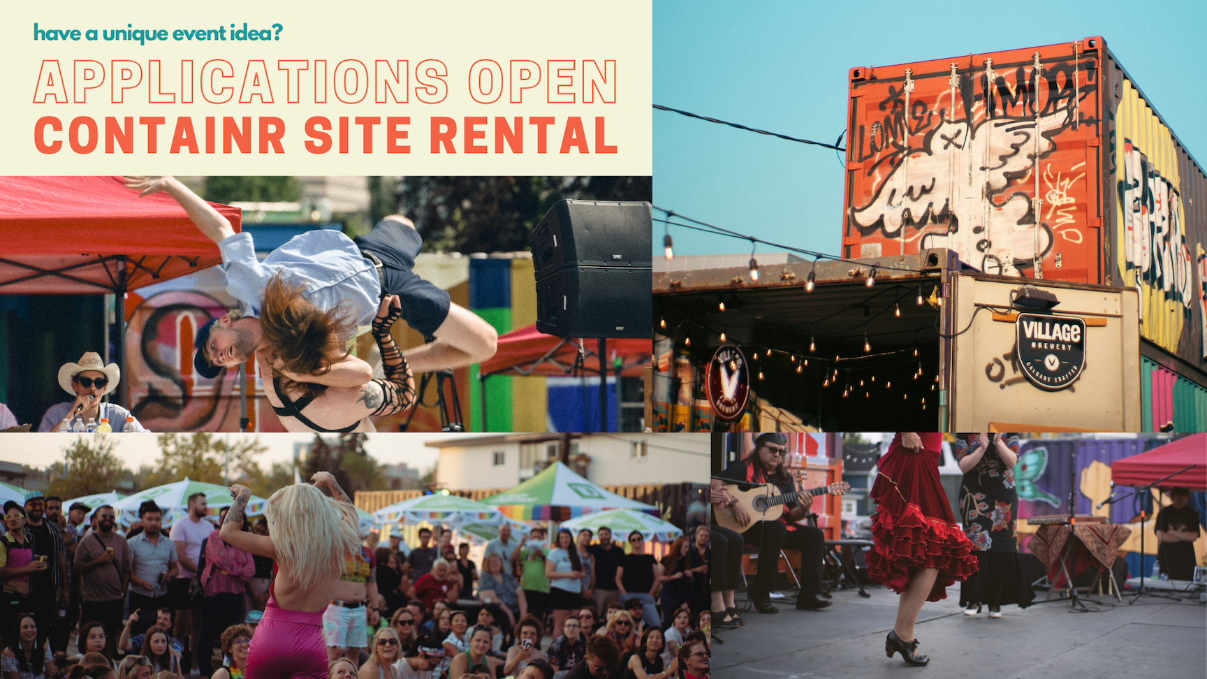 In the past containR has hosted concerts, markets, album release parties, drag shows, puppetry, open mic nights, theatre, kids events, block parties, sing alongs, poetry readings, art shows, circus shows, jams and more… what will you come up with?!