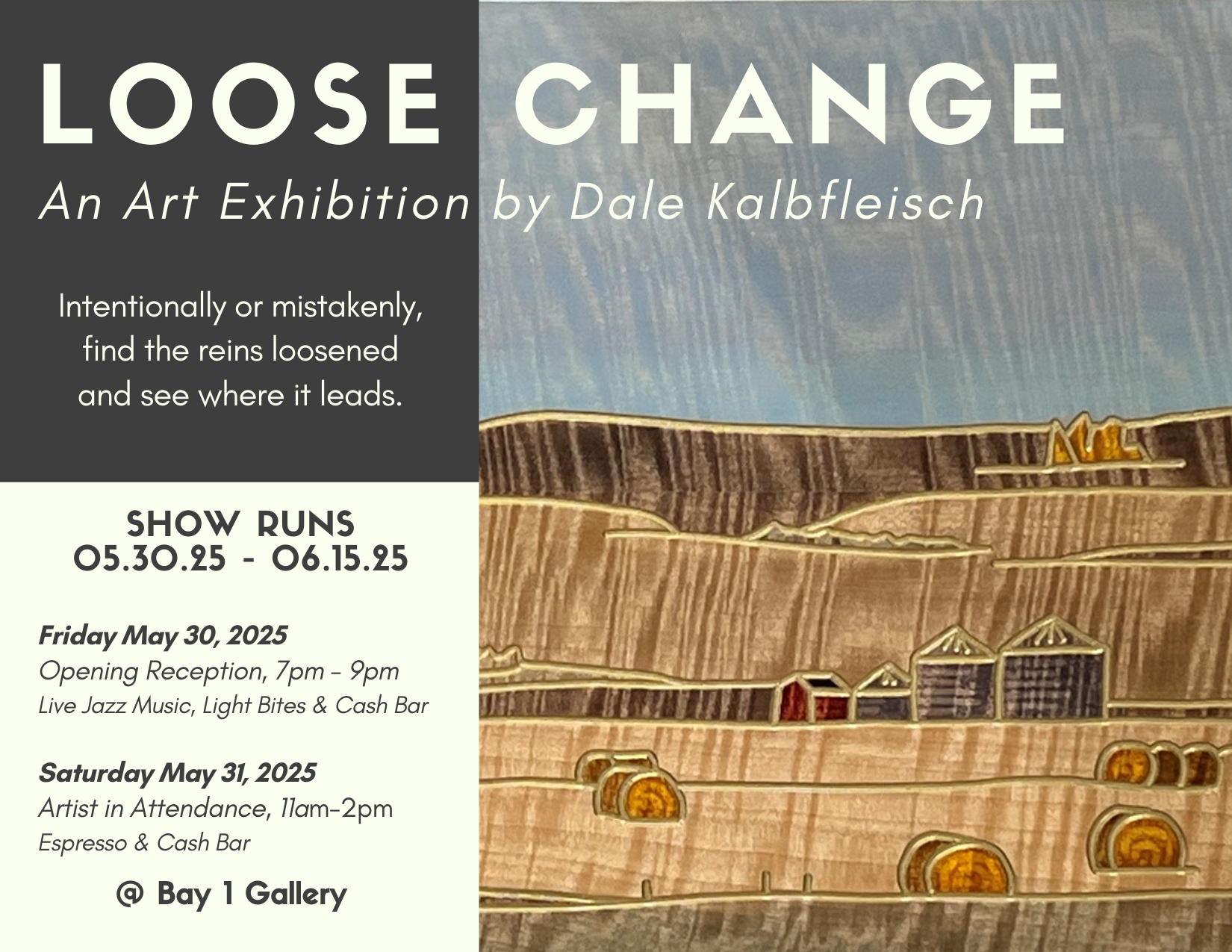 Using a mix of wood veneers, ink, and intricate routing, Dale creates striking prairie and mountain scenes that capture the interplay of nature, perspective, and the ever-evolving landscape, inviting viewers into a quiet contemplation of change.