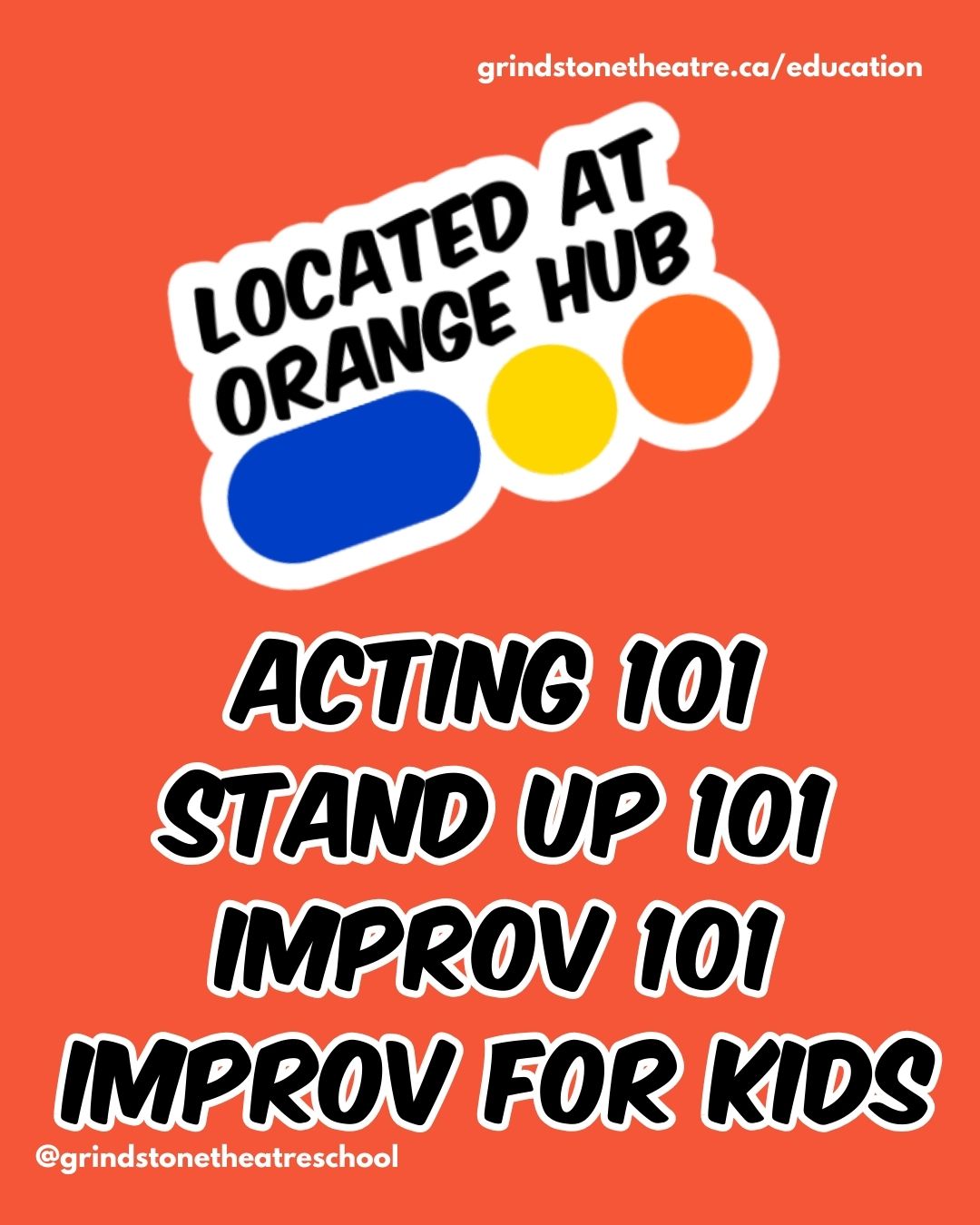 Live far from the Grindstone? Not to worry! Grindstone Theatre School is now also in The Orange Hub!