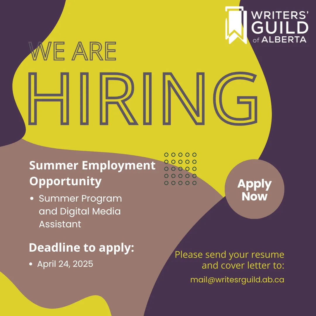 Writers’ Guild of Alberta Summer Employment Opportunity: Summer Program and Digital Media Assistant