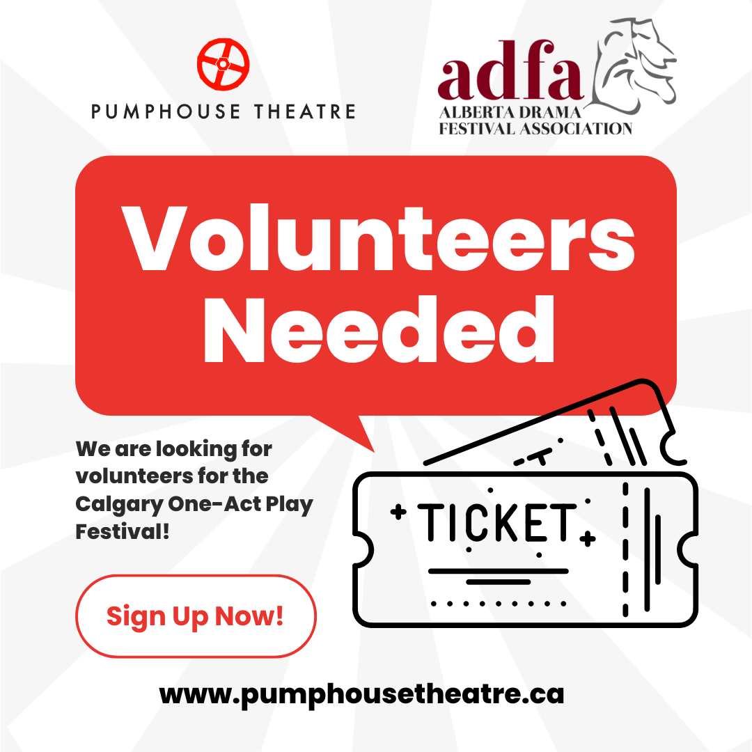 ADFA and Pumphouse Theatre: Calgary Region One Act Play Festival 2025: Call for Volunteers!