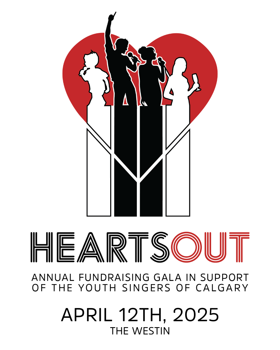 At HEARTS OUT, every song, every step, and every bid supports young performers in Calgary. This semi-formal gala is an unforgettable night of live entertainment, gourmet dining, thrilling auctions, and a dance floor that won’t quit—all in support of the Youth Singers of Calgary and their mission to create a permanent community hub for youth and the arts.